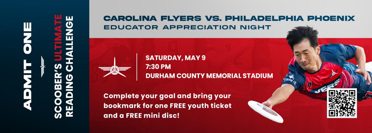 The Carolina Flyers UFA Pro Ultimate Frisbee Team are excited to partner with area schools for Scoober's Ultimate Reading Challenge!