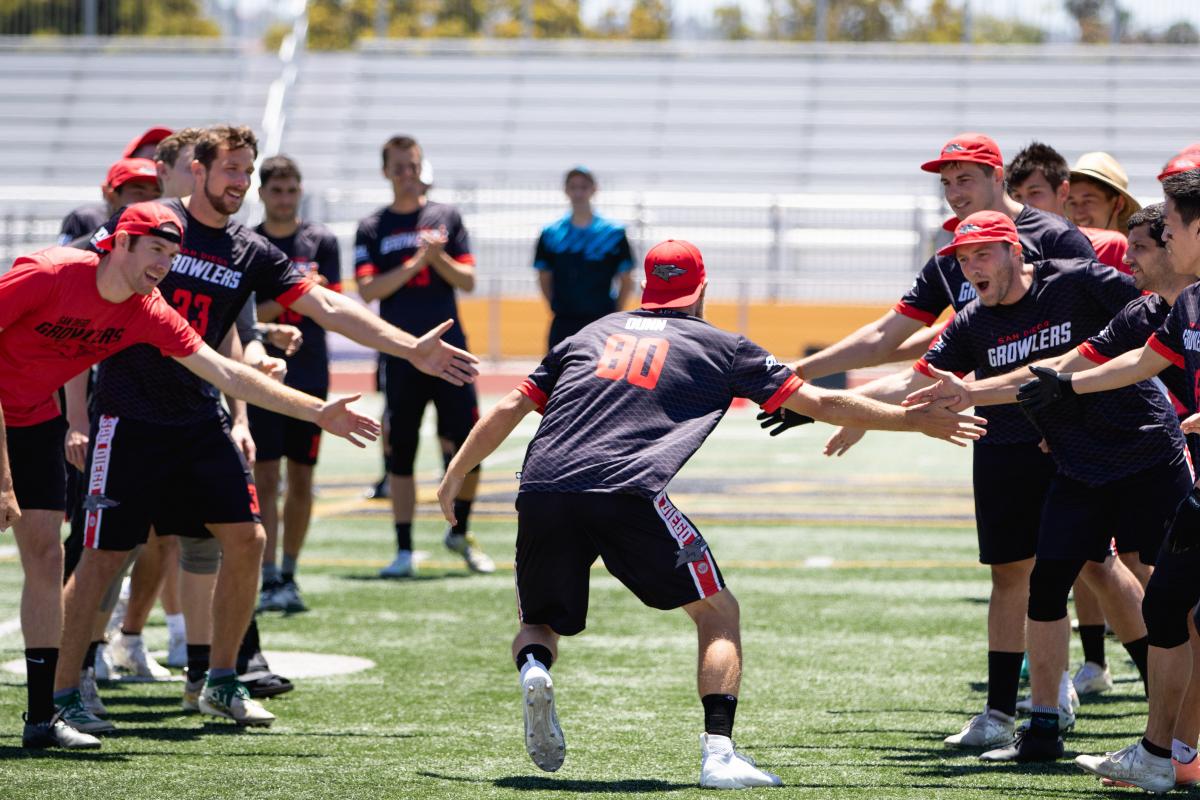 The Growlers maintained good defensive pressure and made Dallas work but they found a way to tie the contest at 16. Lior Givol skied for a Dunn flick huck, and San Diego’s Jeff Silverman and Zach Schakner almost came up with layout blocks, but Dallas once again countered, 17-17. The teams traded, Dunn assisted to Givol, and the Roughnecks threw the disc away on the next possession due to the Growlers defensive activity. El-Salaam connected with Hunter Corbett for the break, but Dallas struck back with a hold, 20-19. The Growlers were poised to score on offense but after a drop in the endzone, a Roughnecks timeout and break, the score was tied at 20 with 2:13 remaining. On the next possession, the Growlers attempted a deep shot but the disc sailed out of bounds, and the Roughnecks advanced to midfield before Paul Lally got it back with a layout block on the sideline! Just a few swing passes later, Helton calmly threw a backhand to a sliding Jesse Cohen for the goal with 14 seconds left, 21-20. Dallas had a chance to tie the game and threw a desperation hammer at the buzzer, but Max Hume lept up for the block to secure San Diego’s victory.