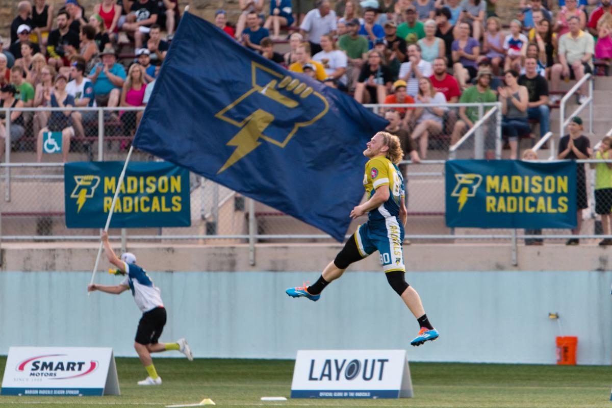 As the clock ticked down and the buzzer sounded on the Madison Radicals 2018 AUDL championship win, the team rushed the field to a chorus of thousands of fans. As the trophy presentation began, the joyous mob encircled the team, continuing their cheering for what felt like hours. When Kevin Pettit-Scantling posed with the trophy, the crowd began to chant.