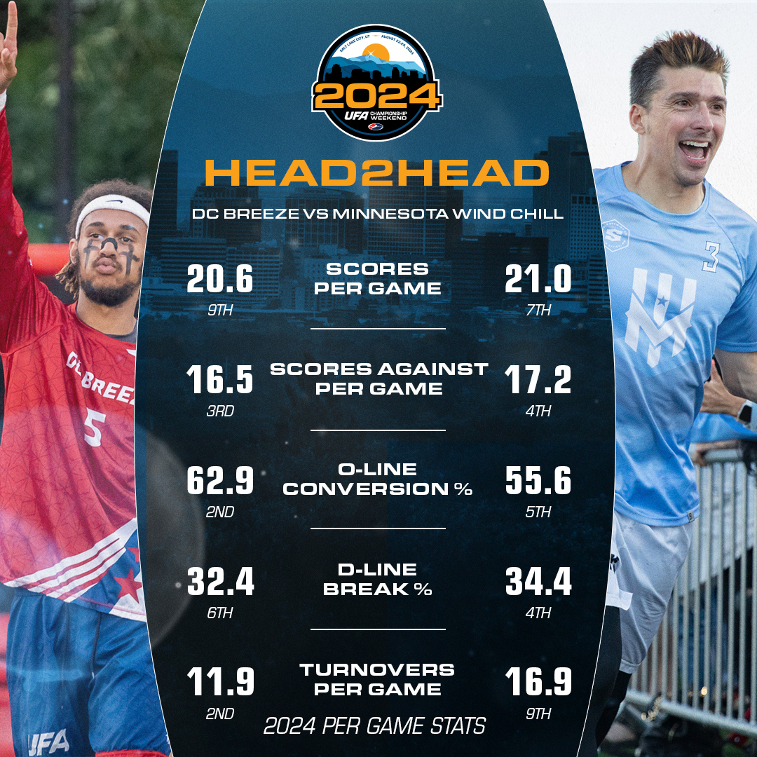 The one bit of good news for Minnesota is that they have more Championship Weekend experience than the Breeze. Most of their top players participated in last year's dramatic semifinal against the Shred, while DC has only one player who has ever reached this stage (Charlie McCutcheon in 2022).