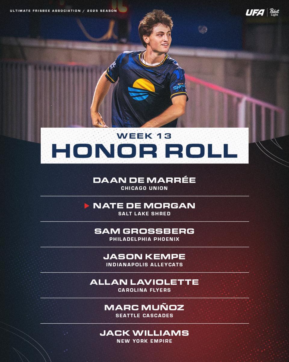 In his first five games with the Shred, Nate De Morgan was like a fancy new car that Salt Lake, from an O-line perspective, mostly kept locked up in the garage. But on Friday night against Minnesota, the 19-year-old frisbee wunderkind really revved his engines on offense for the first time, to dazzling results. Quite simply, De Morgan’s got the throwing skills, arsenal, and swagger to change the shape of the field for the Shred attack, and the recent college champ will absolutely be a tantalizing X-factor for Salt Lake in the playoffs. He set a new career-high with 190 throwing yards against the Wind Chill, completing three hucks and tallying five scores—three assists and two goals—in Salt Lake’s 22-18 triumph.