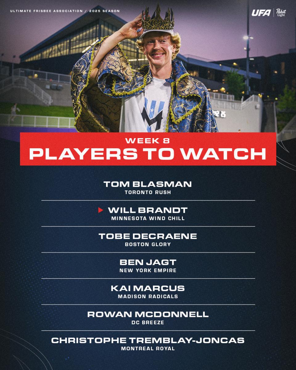 2024 Championship Weekend MVP Will Brandt has largely picked up where he left off last year, as he leads the Minnesota Wind Chill in assists, completions, and total yards at the halfway point of the season. He has 14 assists in his last three games and is on pace to set career highs across the board if he can stay healthy for the full season. Breese Stevens Field is where it all began for Brandt back in 2021, as he made his UFA debut in a five-score, 42-completion effort as the Wind Chill took down the Radicals in overtime. In Week 9 against Madison last year, albeit at home in Minnesota, he set career highs with eight assists and a +7 plus/minus. Brandt is the future of the Wind Chill offense, and they’re going to need his consistency this week against the league’s number two defense being fueled by a rowdy Madison crowd.