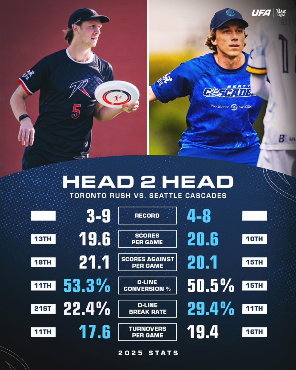 While neither the Rush nor the Cascades qualified for the playoffs in 2025, this matchup is still all sorts of fun. After all, Seattle’s surprise semifinal appearance 17 months ago captivated fans from coast to coast, and Toronto’s international reboot last season rippled across continents throughout the ultimate frisbee world.