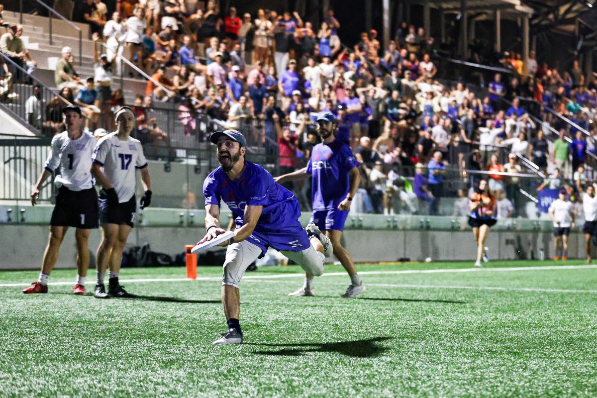 “I felt confident heading into the first game,” said Lander, who turned 24 this past January. “I’ve played a lot of high-level games throughout my career, and at the end of the day, the UFA is still just ultimate, even with the rule tweaks. Tobe convinced me to fly over in early April for a practice weekend, which really helped me adjust to the bigger field and find my rhythm with the team faster. Nevertheless, I still caught myself stalling a few times while marking. Whoops. I knew I’d be good for a couple blocks, that’s what I’m here for. Five in my debut is a solid start, though to be fair, a couple were handed to me.”