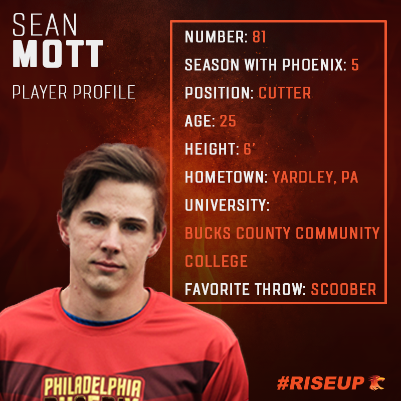 Sean Mott hails from nearby Yardley, Pennsylvania. He started playing ultimate as a backup sport during his junior year at Pennsbury High School. A former soccer player, ultimate has now become his primary sport. He started playing professionally with the Phoenix in 2014, marking 2019 as his fifth with the team. Mott is a smart and fearless player; his quick footwork, explosive verticality and arsenal of throws make him a constant threat for defenders. He has recently secured a slew of accolades: AUDL Top 25 Players Under 25, a Top 5 AUDL Scorer in 2018, and the only player in the league with 50+ assists and 40+ goals in each of the past two seasons. Mott credits his family, full of athletes, for helping to make ultimate a big part of his life by encouraging him to try any and every sport to find one that he truly loved. He is looking forward to matching up with frequent East division leader Toronto Rush this season, and showing the East he has yet to hit his ceiling. Outside of ultimate, Mott works with his family’s landscaping business.