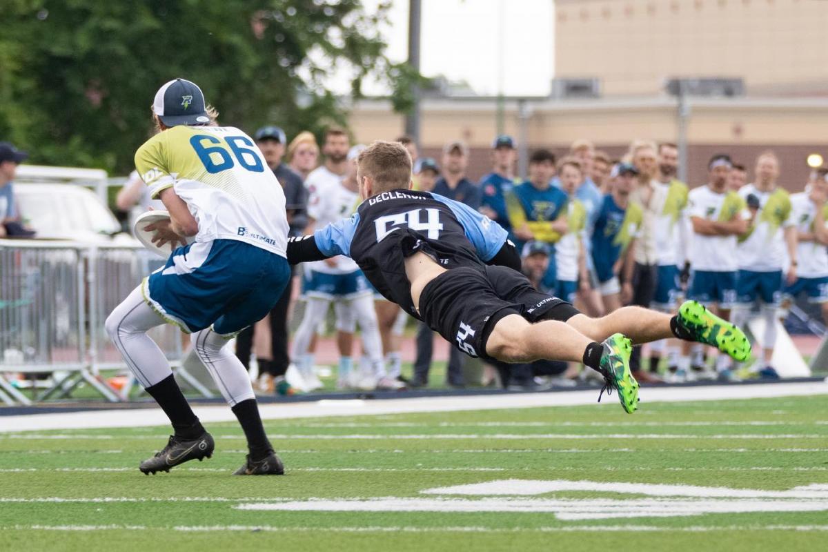 Daniel Garlock and Andrew Meshnick both added two more blocks to their season totals and continued their masterful defensive play. On the other end of the disc, Kai DeLorenzo had a rough game trying to figure out the wind, throwing the disc away five times.