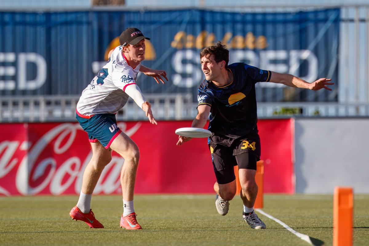 The pressure never let up once it was the offense’s turn despite the absence of Chad Yorgason. The team captain was recently named to the midseason All-UFA First Team by Evan Lepler and Adam Ruffner, but was out for the Oregon rematch with an injury. He still demonstrated great leadership as he supported the rest of his teammates from the sideline.