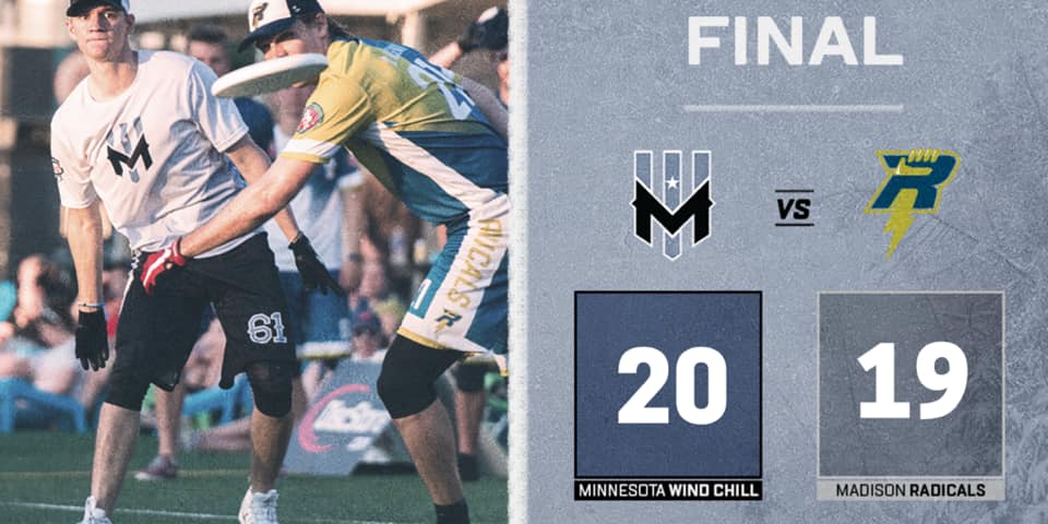For the first time in 2,190 days, the Madison Radicals lost to a divisional opponent at home. The Wind Chill took down the defending AUDL champions 20-19 at Breese Stevens Field in Madison. 2,190 is 47 games worth of days, an astounding streak of wins against divisional opponents at home. The Minnesota Wind Chill were the first team in the Midwest Division to finally break through the home field advantage that is Breese Stevens Field.