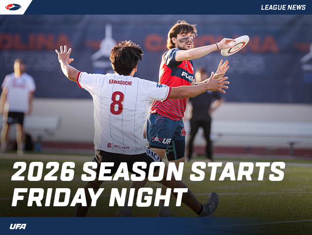 The 2026 season begins with the return of "Friday Night Frisbee" on April 24 as the Carolina Flyers face-off against the San Diego Growlers in a battle between two top offenses. Watch live and FREE on UFA YouTube.