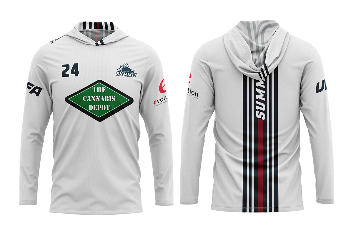 Evolution Physical Therapy is an official physical therapy provider for the Colorado Summit this season, plus their logo looks sharp on the Summit’s sun-hoodie warm-ups.