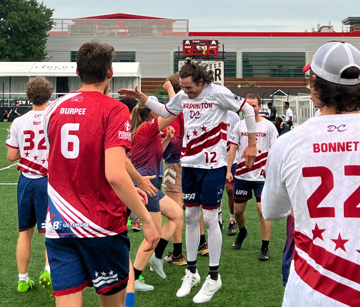 DC took their first lead of the game within half a minute in the second quarter with McDonnell posting his 500th score, thanks to a huck assist from longtime teammate Tyler Monroe. The Breeze then turned the game on its head with two straight breaks to lead 7-4. New York looked stunned and called timeout to reset after a six-goal DC run spanning over seven minutes.