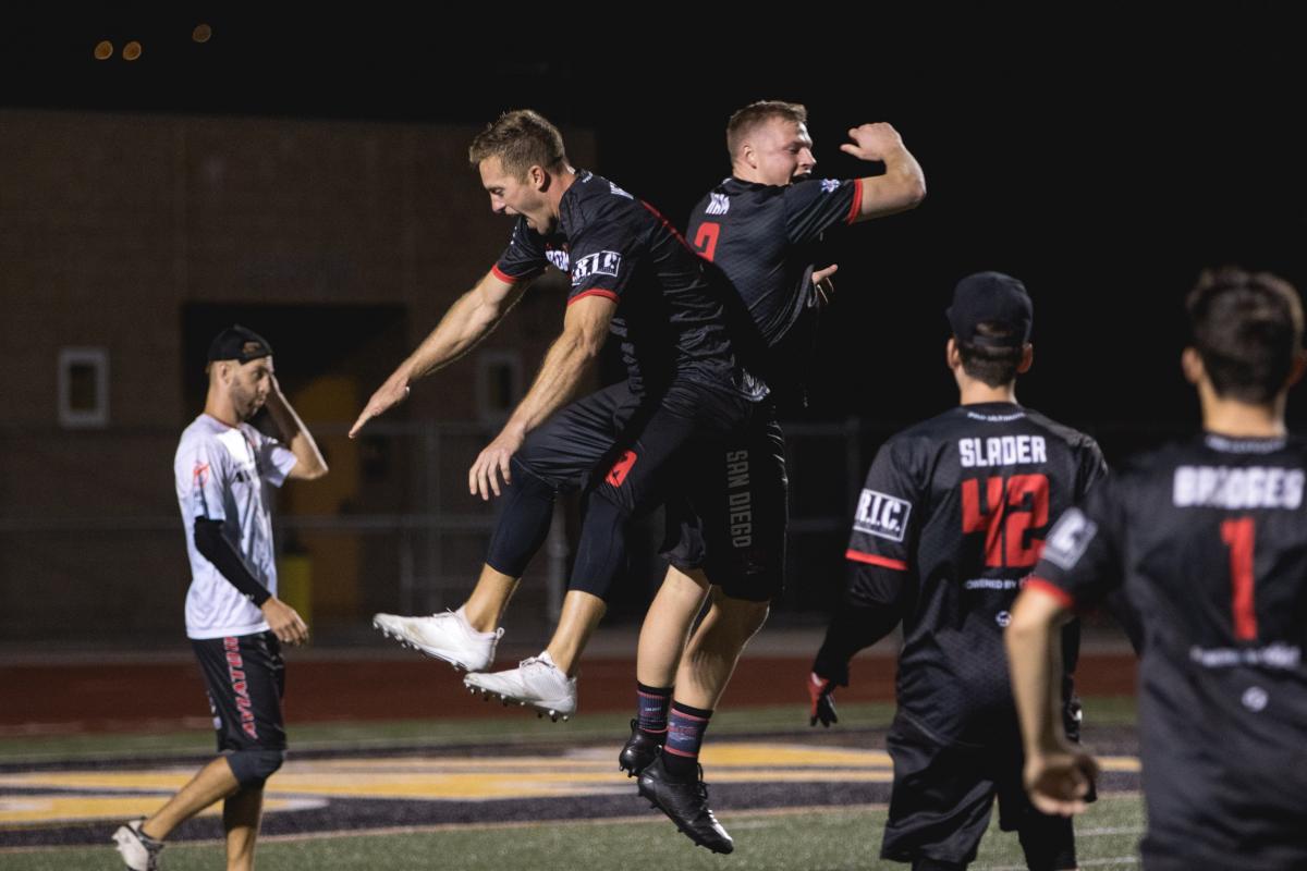San Diego started the game by trading offensive scores with LA, then Sean Ham got the crowd on their feet with a giant leaping catch for the score, 2-1. Both teams traded several goals, but the Growlers executed on a break to extend their lead to 6-4 late in the first quarter. The Aviators scored with 10 seconds left, but San Diego’s Jonathan “Goose” Helton lofted a backhand to the endzone and Trevor Purdy came down with the buzzer beater, 7-5.