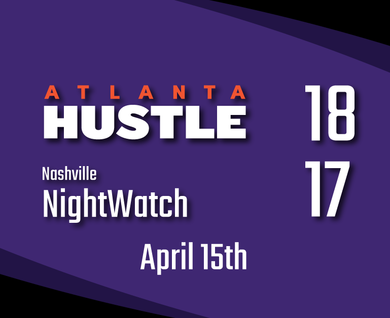 Coach Knowles was not able to attend the game after it was rescheduled and her presence was missed late in the game as Nashvillle mounted their comback. The NightWatch are a hungry team that has no quit in them. Nashville has a well run sideline trap defense that gave the Hustle offense fits in the 2nd half.