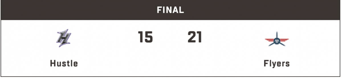 The Hustle faced their first bit of adversity in their loss to the Carolina Flyers on Sunday. It was close early, with both teams trading scores in the first quarter. The Hustle took an 8-7 lead with 8:47 left in the second quarter and that was the last time they would be ahead. Carolina followed this with a 4-0 run to lead 12-9 at half and did not look back. Hayden Austin-Knab led the Hustle with 5 goals in a strong receiving performance. Mischa Freystaetter had his best game of the season with 3 assists and 433 total yards.