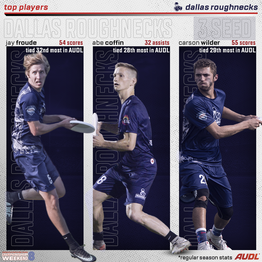 Dallas has a clear historical edge in playoff experience, and is the only team entering this year's Championship Weekend having won a prior AUDL title. The Roughnecks still have six players remaining from their 2016 championship squad, and have rebuilt their rotations on a large crop of young Texas talent. Jay Froude, Abe Coffin, and Dalton Smith are the faces of this franchise, but Dallas can go 20+ deep on their roster and still find playmakers that could become an x factor this weekend. Last year, Connor Olson and Carson Wilder showed their stuff on the big stage, and there's a handful of peers who could have similar performances tomorrow night. The Roughnecks thrive off big plays, and if they get rolling early—as they did in their big South Division Championship Game win over Raleigh—they will look like a true title contender.