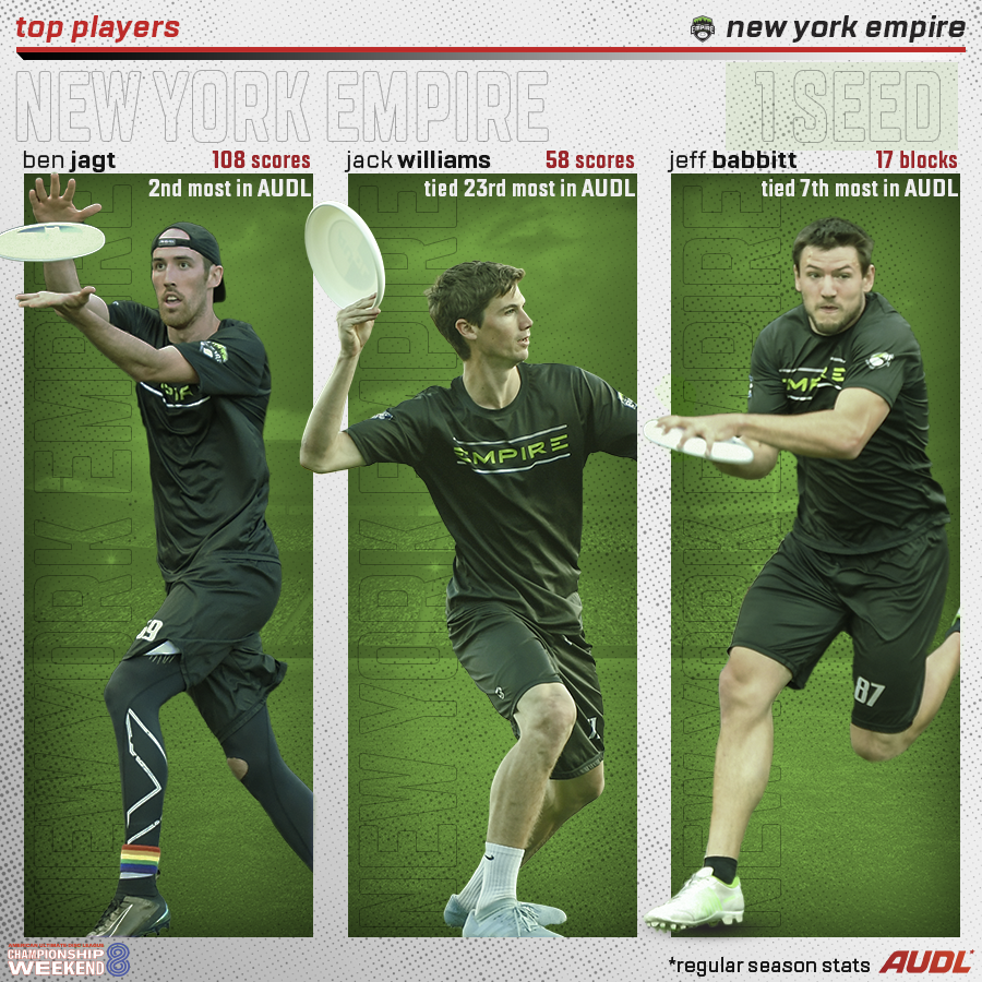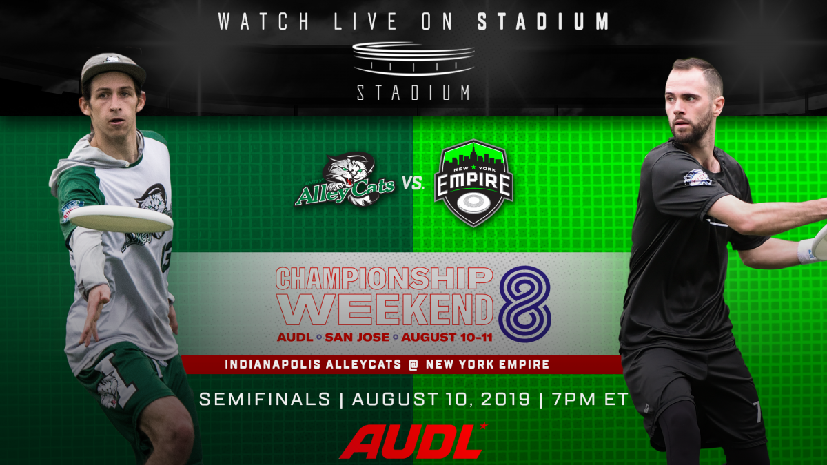 The first semifinal of 2019 AUDL Championship Weekend kicks off with two legacy franchises that have never won a title, as the Indianapolis AlleyCats face off against the undefeated New York Empire. The Empire are making their fourth semifinals appearance since 2013, while the AlleyCats are returning to Championship Weekend for the first time since playing in the inaugural AUDL Championship Game in 2012. The Empire enter as heavy favorites, but the AlleyCats have built their team identity on proving haters wrong, and are experienced at winning with the odds stacked against them.