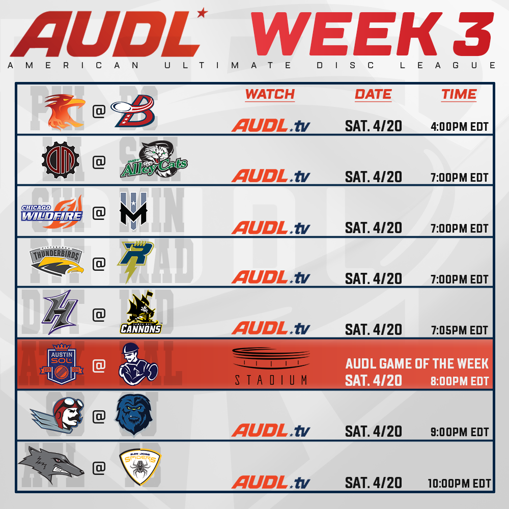 - Austin Sol at Dallas Roughnecks - 8:00 PM/ET