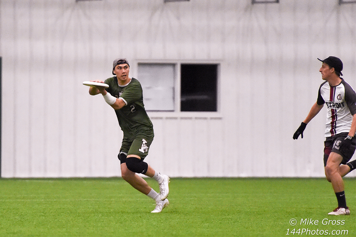 After a quiet opening game, Rick Gross returned to form as the Indianapolis AlleyCats notched their first win of the 2019 season in their Week 3 home game against the Detroit Mechanix. Gross was dominant offensively throughout the game, contributing eight total scores on 22 O-points played. Consistently torching the defense deep, Gross reeled in several hucks as a fast-paced AlleyCats offense shined in the indoor environment. He stretched the field and high-pointed every disc; the result was a team-high six goals. Gross was much more involved in this game than he was the week before — 22 touches against Detroit versus nine against Madison — as the team made a conscious effort to feed the disc to their offensive playmakers.