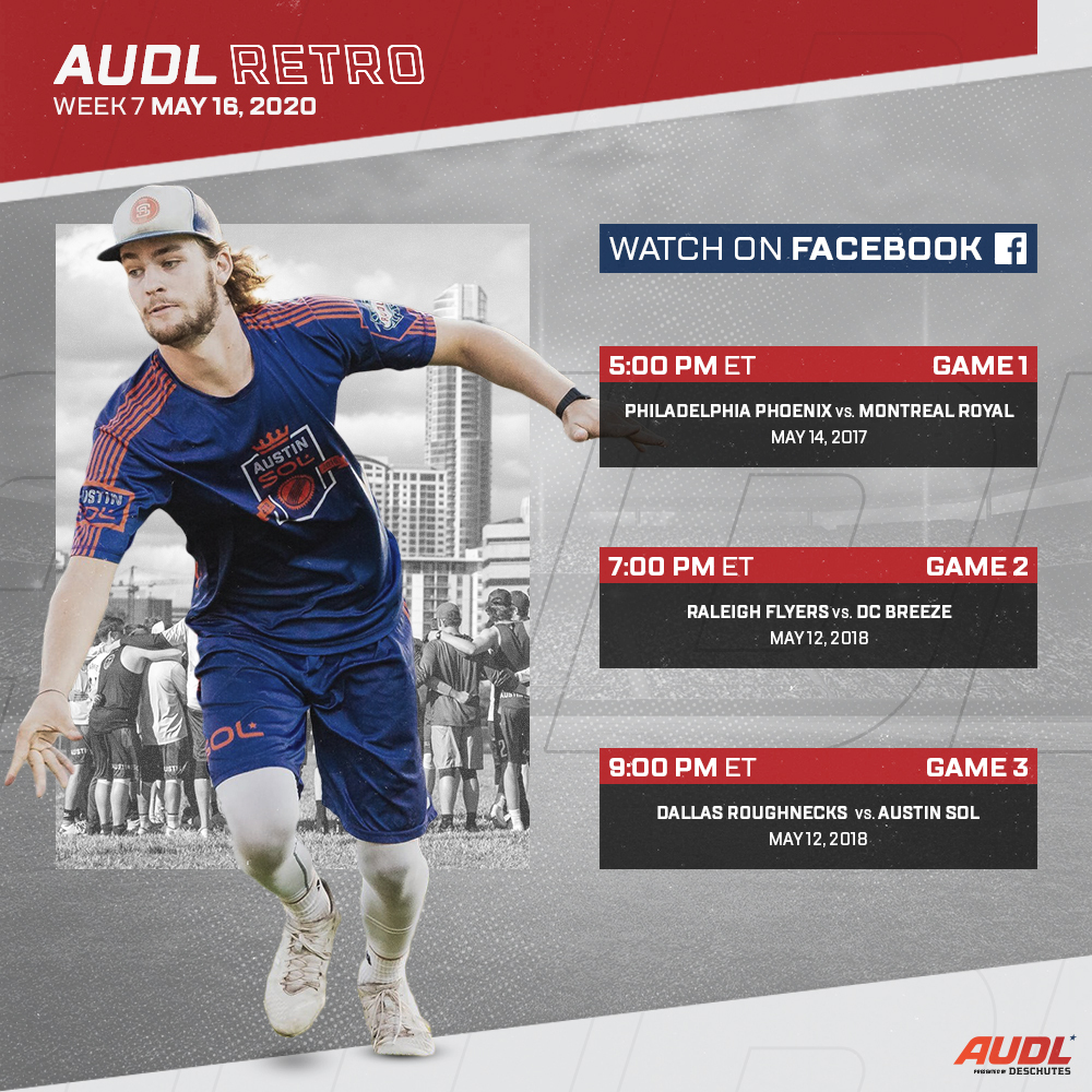 While the variety of experiencing a different AUDL city in person every week is absolutely missed, the recurrence of these Saturday Retro tripleheaders on Facebook Live has been a nice and reliable calming lineup for those of us who have built so much of our lives around this sport for so many years. Here’s what the slate has in store this week.