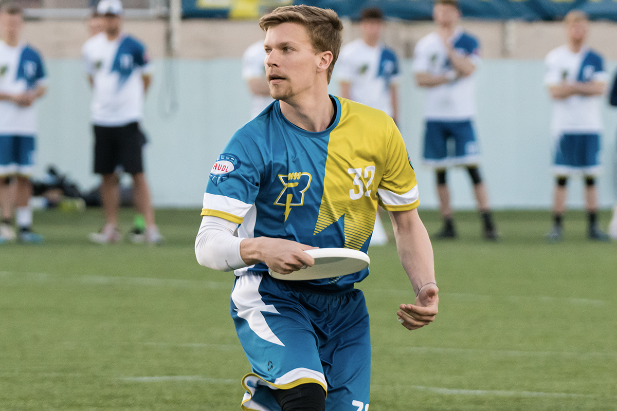 With the fourth most scores in AUDL history, finding the end zone has always come easy for Goose Helton whether he’s on the throwing or receiving end. In Week 8 of 2017 with the Raleigh Flyers it was his throwing performance that stole the show, as he completed 22 passes, six of which went for assists (27.2 percent). Helton showed off his vast throwing arsenal throughout the game, regularly continuing the disc downfield after hard initiation cuts. He has elite range on his hucks, and he’s as natural an athlete as they come when running them down himself. With 2017 MVP Jonathan Nethercutt anchoring the O-line, Helton had the freedom and opportunities to take his shots in a fluid offense that rarely stalled. He would finish the game with six assists and two goals on 27 touches, also adding a block on defense.