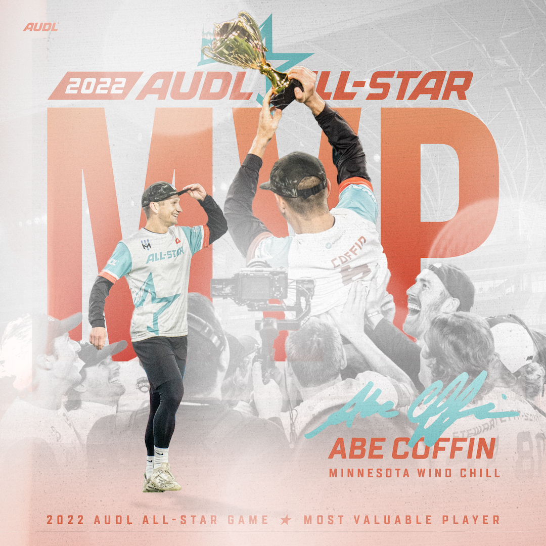 Playing in his first AUDL All-Star Game, Abe Coffin of the Minnesota Wind Chill took home game MVP honors in the East-Central team's 42-24 win last Saturday night. Coffin didn't register a turnover on the night, completing all 32 of his throws and finishing with game highs in assists (6) and passing yards (476). Coffin joins Max Sheppard as the only two recipients of the All-Star Game MVP award.