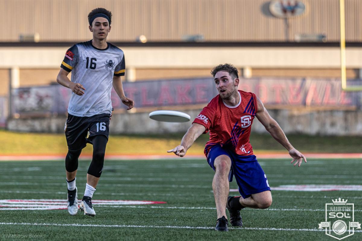 Matt Bennett attempts a pass for the Austin Sol in a 2021 regular season game. Photo by Matthew Brooks