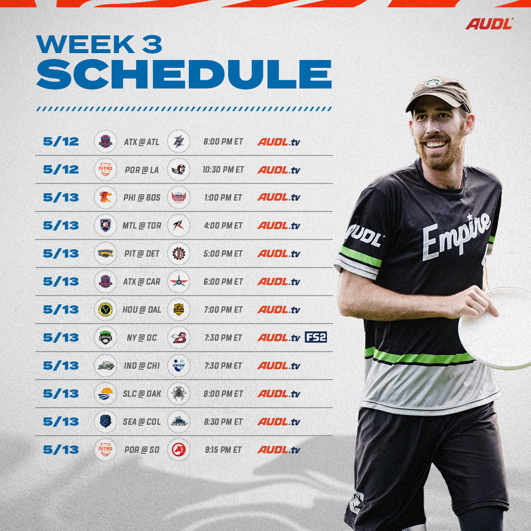 “Parlay of the week: Hustle, Aviators, Phoenix, Rush, Thunderbirds, Flyers, Havoc, Empire, Alleycats, Shred, Summit, Nitro.” Anonymous AUDL player (verified)
