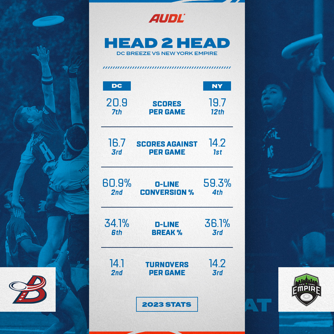 The Empire are the heavy favorites to defend their crown in the 2023 postseason, but they have had some close calls this year. Since the beginning of the 2022 season, no team has come closer to upsetting the Empire than the DC Breeze. They lost by just one goal to New York in Week 3 of this season and in last year’s East Division Championship, so another neck-and-neck battle could be on the horizon.
