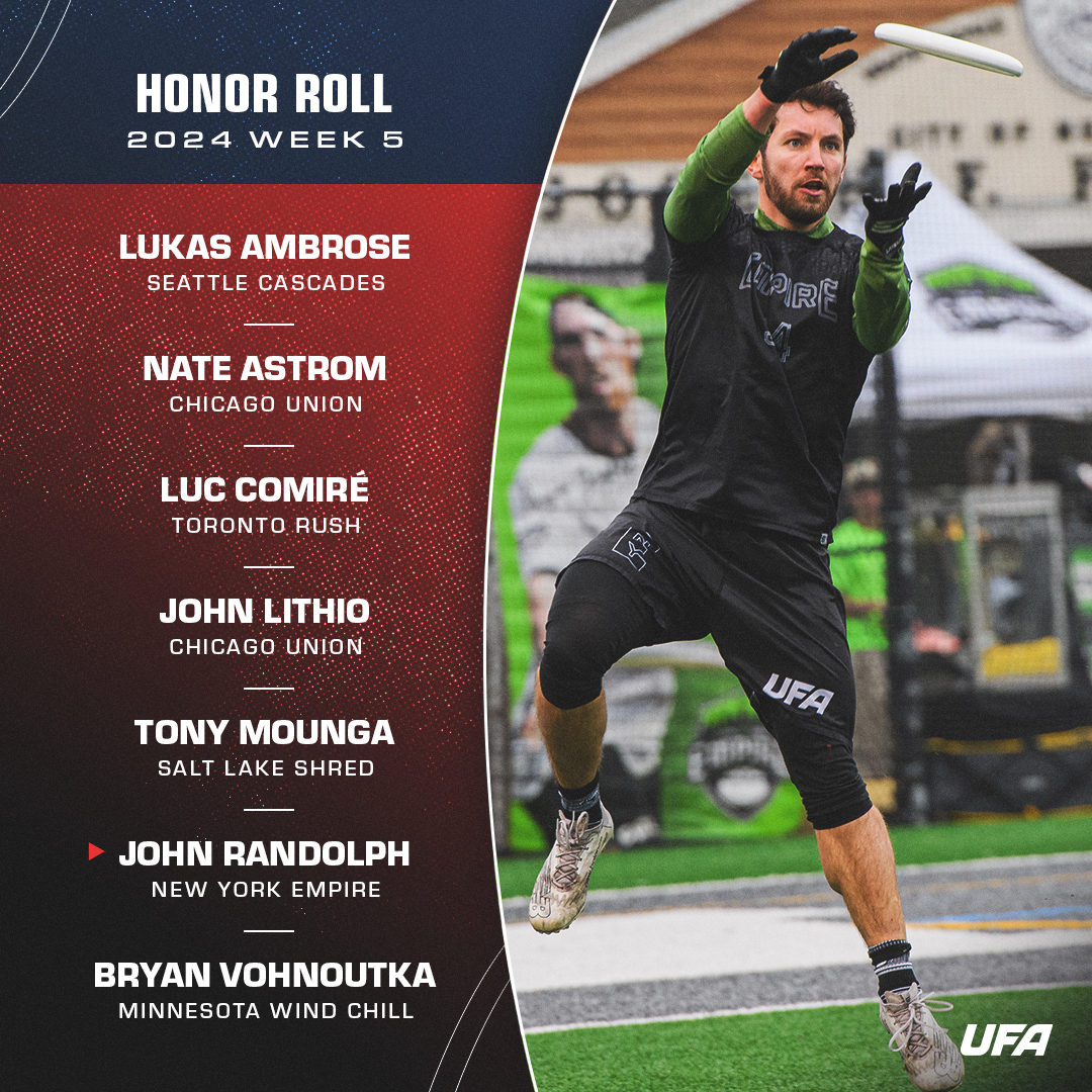 Before he cheered on Brown University to another college championship on Monday in Madison, John Randolph’s Memorial Day Weekend began with an impact performance on Friday night against Philadelphia. The 25-year-old Brown alum caught his first career UFA Callahan, part of his three-goal, two-assist, two-block night against the Phoenix, as New York cruised to a 23-15 victory. Randolph also completed all 15 of his throws and helped the Empire D-line convert 10 breaks on 14 chances, as New York finished the night with a season-low seven turnovers as a team.