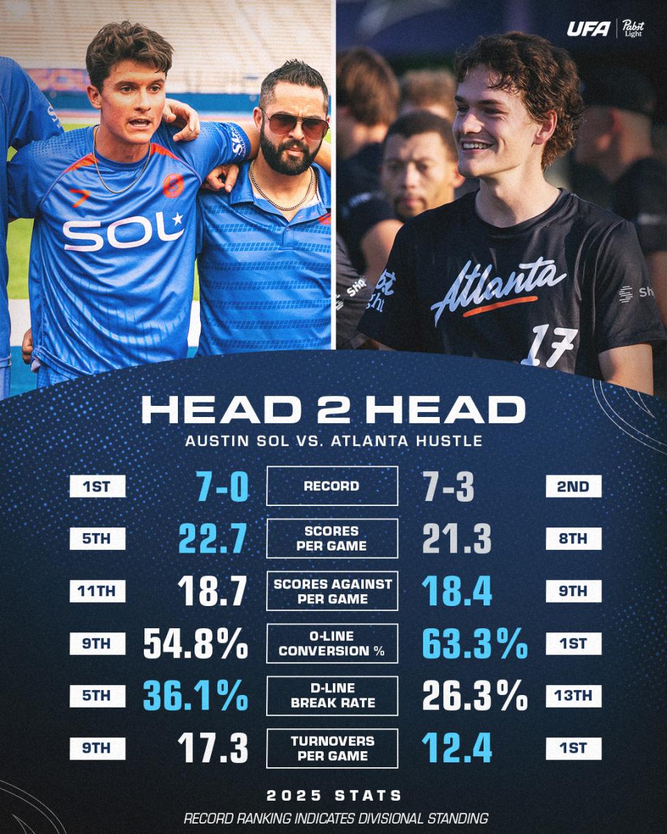 The top two teams in the South Division meet this weekend for their only matchup of the regular season. Each sitting with seven wins atop the South Division standings, the 7-0 Austin Sol travel to Atlanta to face off against the 7-3 Hustle with the hopes of extending their undefeated season.
