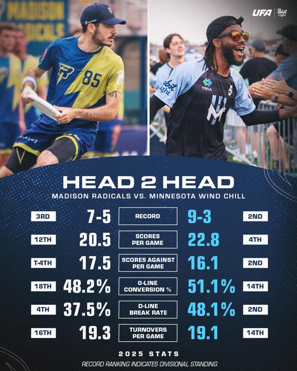 The Wind Chill might not have strong momentum heading into the playoffs, but they landed a favorable matchup right out of the gate. Minnesota has dominated the Radicals, winning their last eight meetings. While their four-game blowout streak against Madison ended in Week 12, the Rads still struggled with late-game errors and losing huck battles.