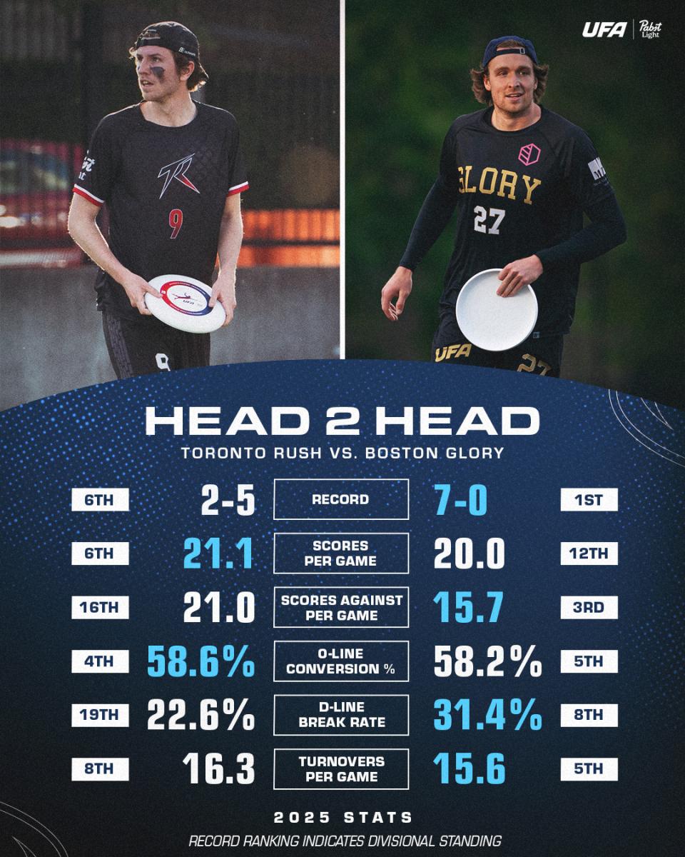 Toronto’s level of play in this game could also be heavily influenced by their Friday Night Frisbee showdown. A grueling, extended game in New York could leave the Rush depleted for Saturday's matchup.