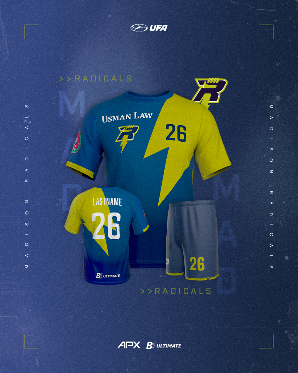 One of the most classic jerseys in the UFA returns for the Madison Radicals. Their home jersey is the same as previous years but features a brighter, refreshed look for the chartreuse flair.