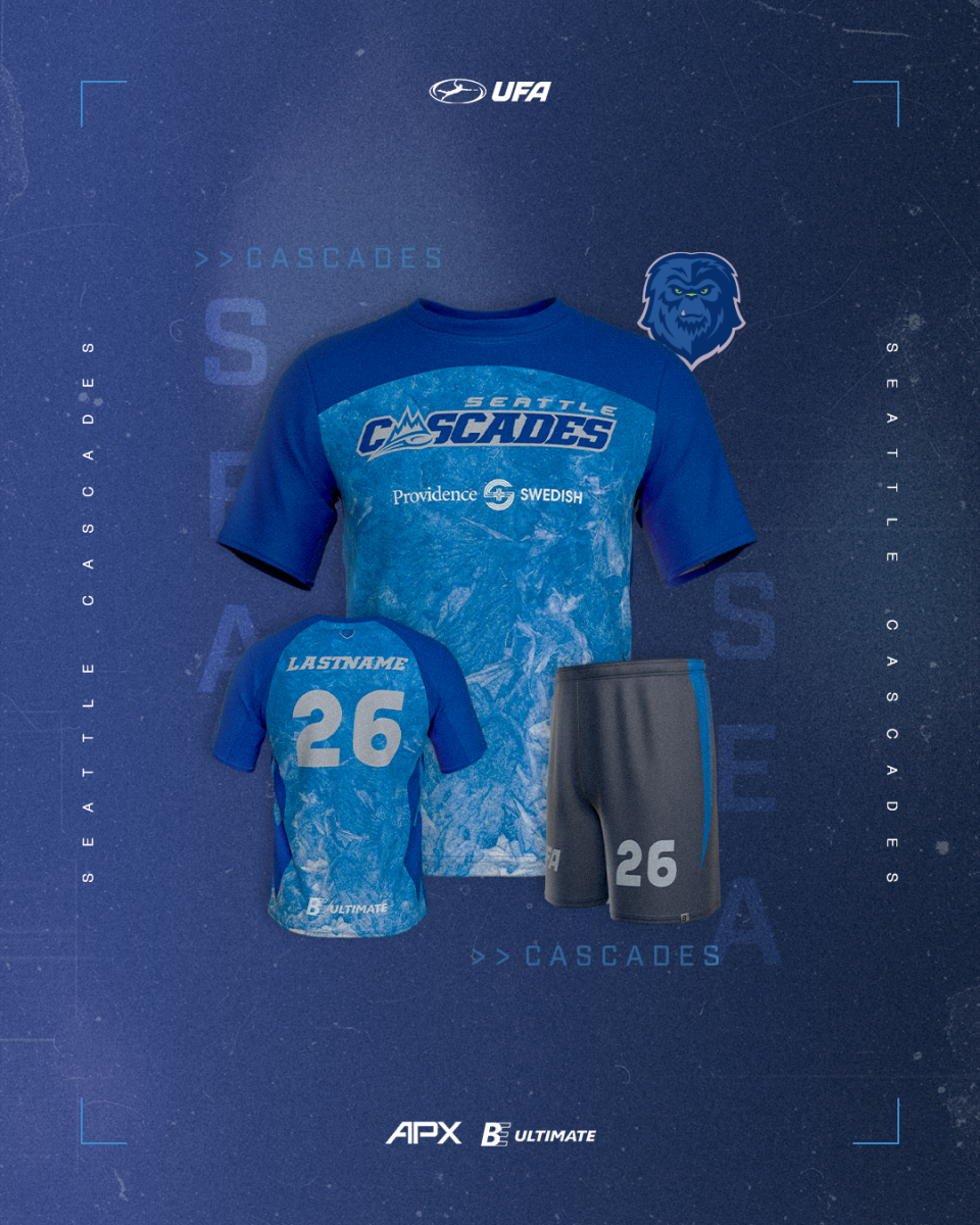 The mountain themed home jerseys for the Cascades are back for 2026. The darker blue accents on the side of the jersey give a slimmer look to the kit and are a new addition this year.