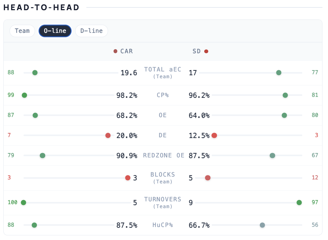 We may see more and more excellent performances early in the season in the coming weeks and seasons. Not only have turnover numbers league-wide plummeted since 2021, but if they can avoid some April showers, teams will find themselves getting to execute what they have been hitting hardest in pre-season practices. Because converting offensive holds is the most important thing a team can do to sustain success, many teams will dramatically prioritize this in the lead-up to the season. The thought is that it is possible to compete with a defense that isn’t getting as many breaks as you might like, while it’s extremely difficult to win often with an O-line that cannot score consistently. Coaching staffs across the league hammer in reset systems, how to get out of double-team roller pulls, creating space downfield, and converting in the red zone, often before diving as deep into defense as they will by mid-season. For example, while the defenses in the Carolina-San Diego game worked hard, challenged cutters and throwers consistently moment to moment, and forced opposing offenses to focus every possession, there were very few wrinkles or schemes on display that were both unpredictable and in their final forms, especially compared to where the O-lines were.