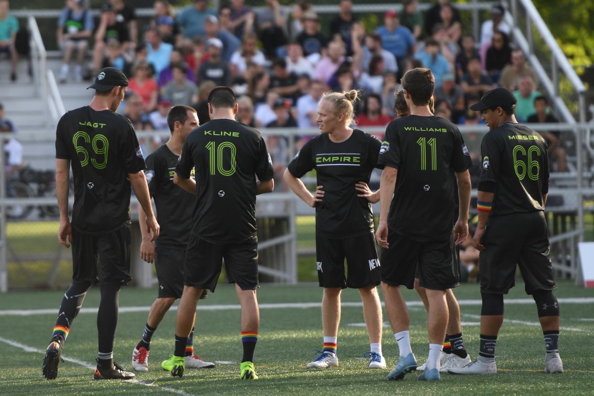 Ben Jagt contributed 15 scores on the night, Harper Garvey bombed the disc anywhere he please, but it was the defensive playmaking of Jeff Babbitt and Beau Kittredge that sealed the New York Empire's most critical showing of the season. The two hulk smashed away the Flyers hopes down the stretch, masking their veteran defensive savvy with truly overpowering displays of athleticism when it mattered most. Though this roster has much different personnel from the days of the "faceless mob" Empire of old, the "next man up" spirit is carried on each point, each week with rigid consistency.