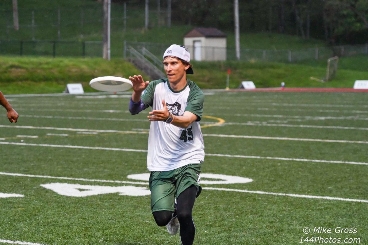 Going on the road and winning a bad weather game in Minnesota might be the difference between the Indianapolis AlleyCats making the playoffs or not later on in 2019—it's hard to overstate how important of a bounce back win that was for Indy in Week 7 after dropping a game at home to Atlanta. And while it's hard to ascribe this team's success to an individual, and especially a first year member of the AlleyCats, it's difficult to downplay the impact of Brett Matzuka's play at handler. He anchored many of Indy's offensive drives in the wind and wet last weekend, completing a game-high 69 passes on 72 attempts. He lock-picked Minnesota's defense at times with precision hammer throws, but mostly Matzuka calmly went through his reads and made the right decision, maintaining AlleyCats possession and helping the team convert on a handful of crucial redzone opportunities.