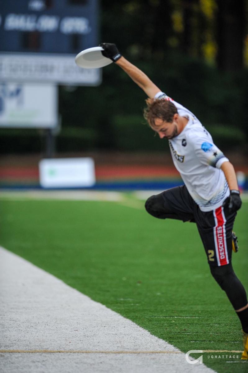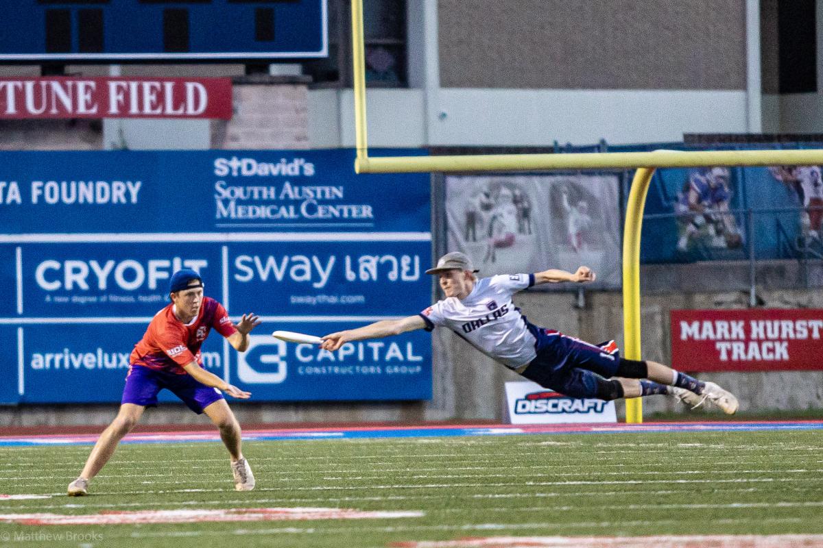 Following a red-zone timeout, Elliott Chartock’s toss toward Jack Williams landed incomplete, as pleas for another foul call did not inspire a whistle. Replays revealed some undeniable contact between Williams and Raleigh’s Tim McAllister, but Williams also misplayed the disc, admitting after the game that the stadium lights, in the same sight-line as the potential game-winning frisbee, prevented him from seeing the disc in that pivotal moment.