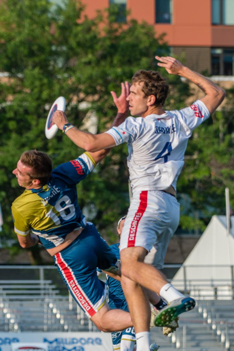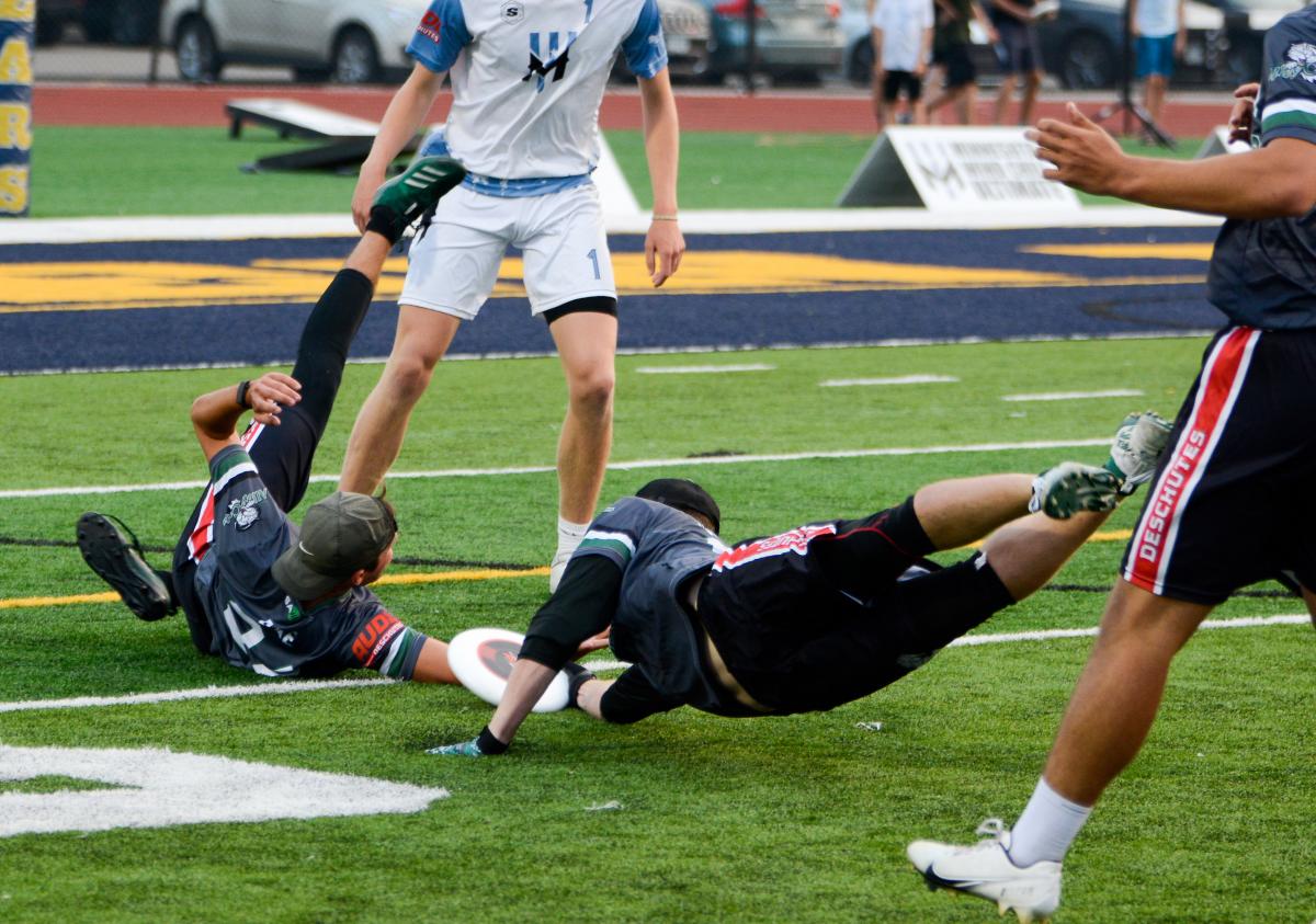 “As soon as the disc touched the turf, I knew we had to move it quickly and knew with how many throws they got off we had roughly 10 seconds,” said Hutton. “B-Von [Bryan Vohnoutka] got a good block on a throw I thought I had to Carter Rae, and I just reacted.”