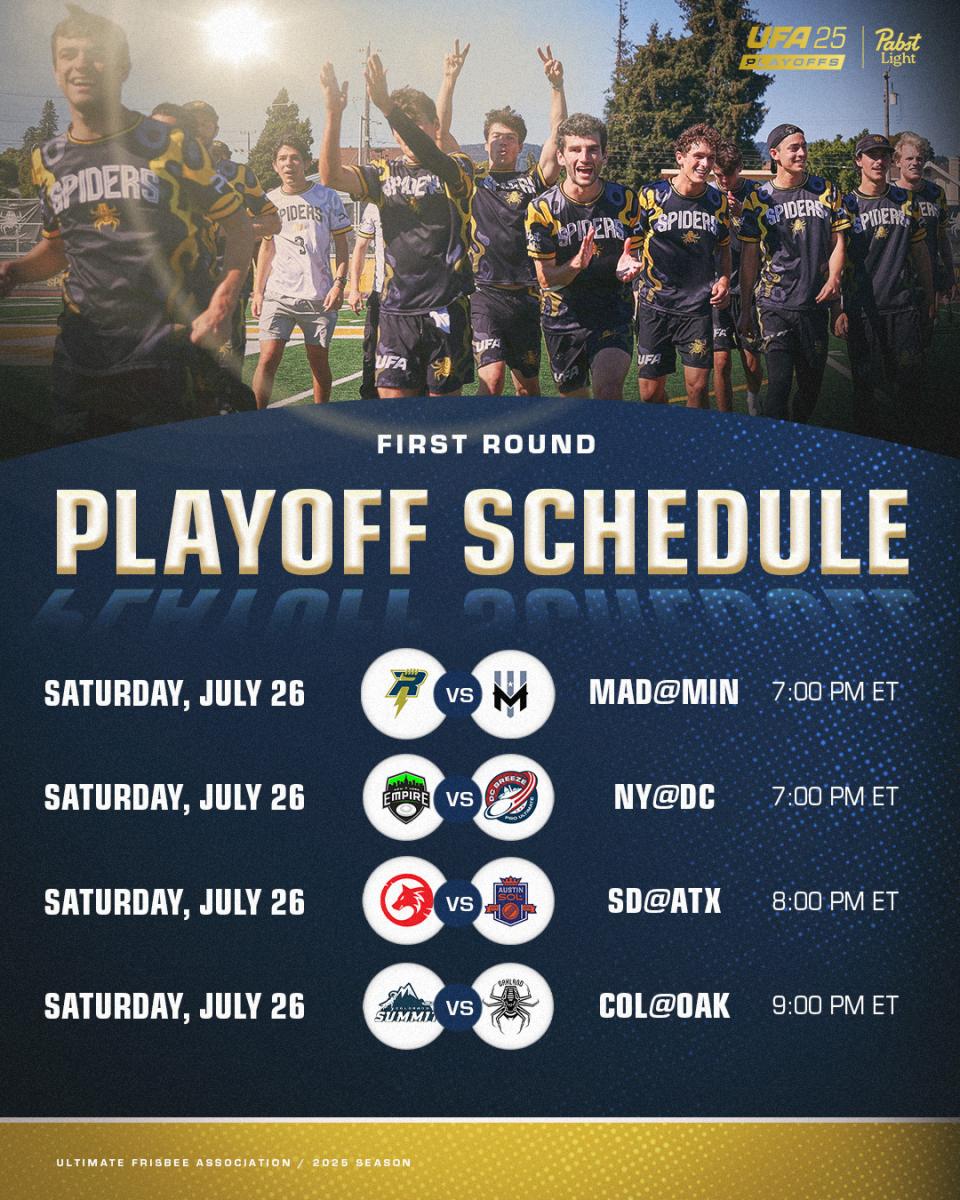 The 2025 UFA playoffs begin in just four days, with four first round games that’ll reveal the final eight teams still alive for a coveted trip to Championship Weekend.