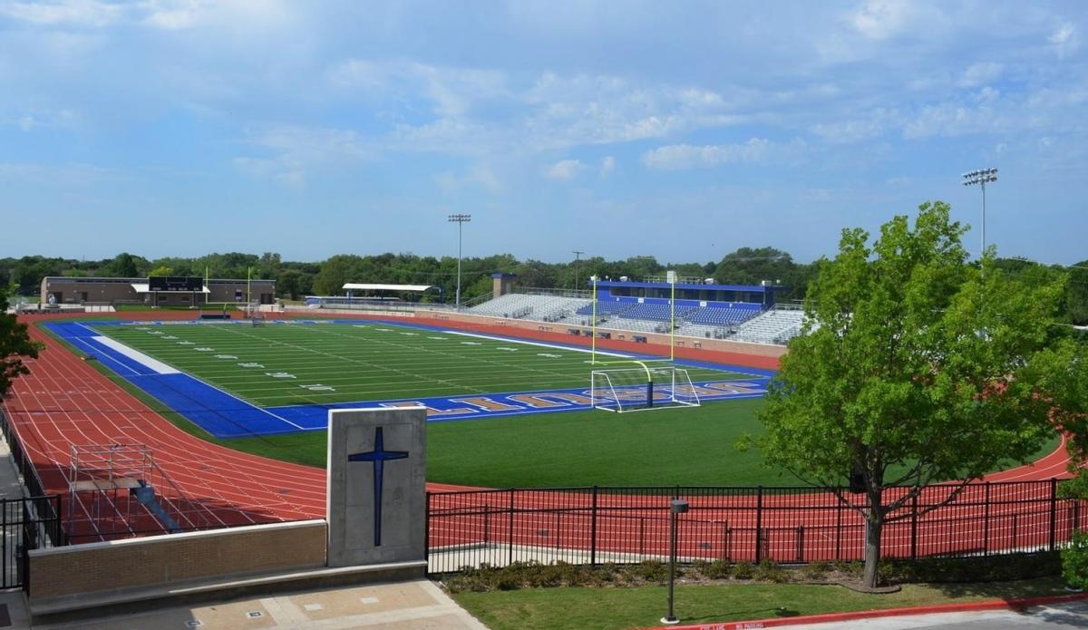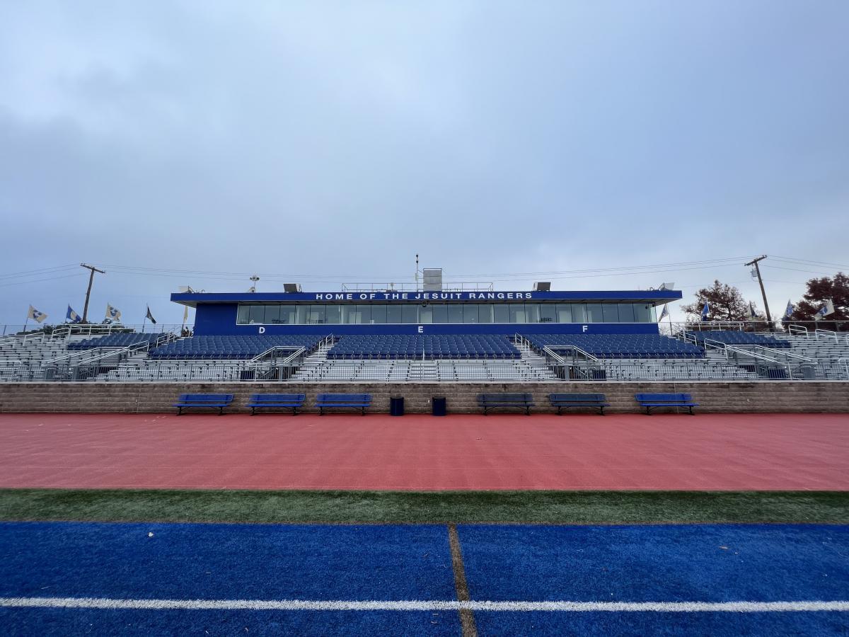 Ranger Stadium, the multi-use facility of the Jesuit College Preparatory School of Dallas is a nearly 5,000-seat venue with a storied history. The turfed facility (known as Gary Pasqua ‘55 Field), is enclosed by a 400-meter track, elevated viewing areas, bench and VIP seating, concession stand, home and away press boxes, turfed and covered event areas to name a few.
