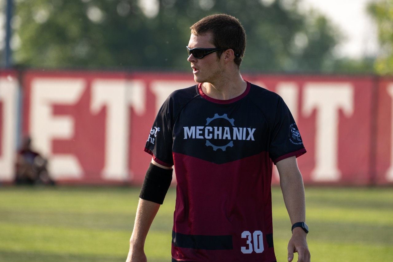Learning to play frisbee again was like riding a bike. Something that benefited from taking so much time off was that I was only able to throw in place. While I was out and then recovering, I was stationary throwing, so my throws had still improved over that time and I was able to focus on making those better. I was practicing with the Ball State team again consistently when I decided that I wanted to try out for professional teams and make my way into the 2025 cycle. That’s when I was pointed in the direction of the Mechanix by my longtime friend and coach, Brad Kennis. He gave me the belief that I would be able to get my professional start there and that I could really have a shot with the team. He gave me Coach Steepe’s contact info and I still remember the conversation I had with him for 35 minutes while I was walking on the treadmill at the gym. I had to miss the first tryout because I was still not confident I would be prepared, but I still came and watched. The second tryout was the first time I played frisbee outside of practice in about a year.