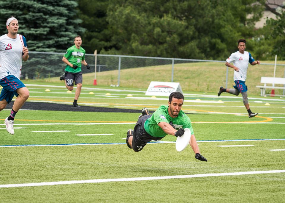 On Saturday afternoon against the Montreal Royal, the Loiseau brothers finally played their first full game together, while completing the fairy tale of connecting on their first ever brother-brother goal. It came at the end of the second quarter, with Karl in trouble with the disc. He had no targets in sight and the quarter about to end. Rather than panic, the veteran heaved a hopeful disc into the endzone, and the little brother made a phenomenal play on the disc.