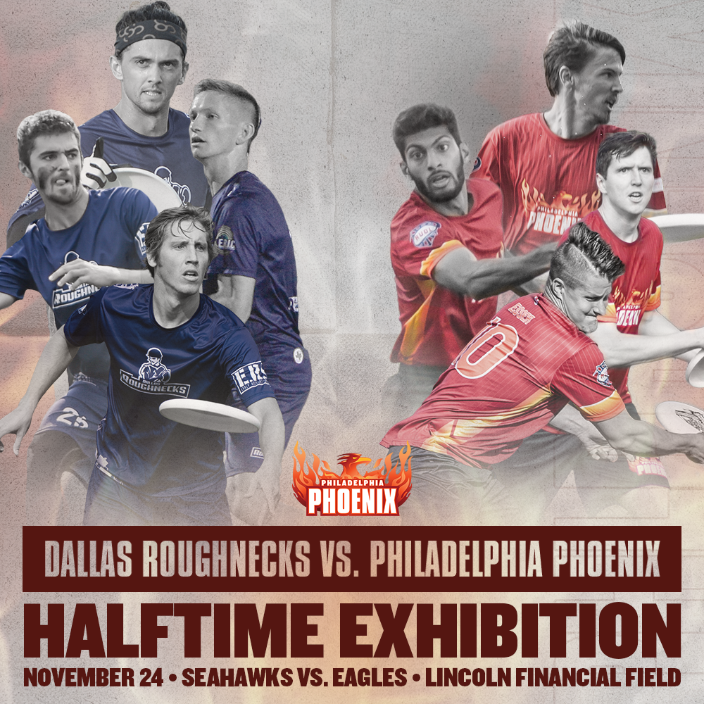 The game will mark the second time AUDL teams have competed at a professional football halftime this fall, with the Chicago Wildfire and Indianapolis AlleyCats having faced off in Chicago a few weeks ago. Over 70,000 people are expected to be in attendance at Lincoln Financial Field.