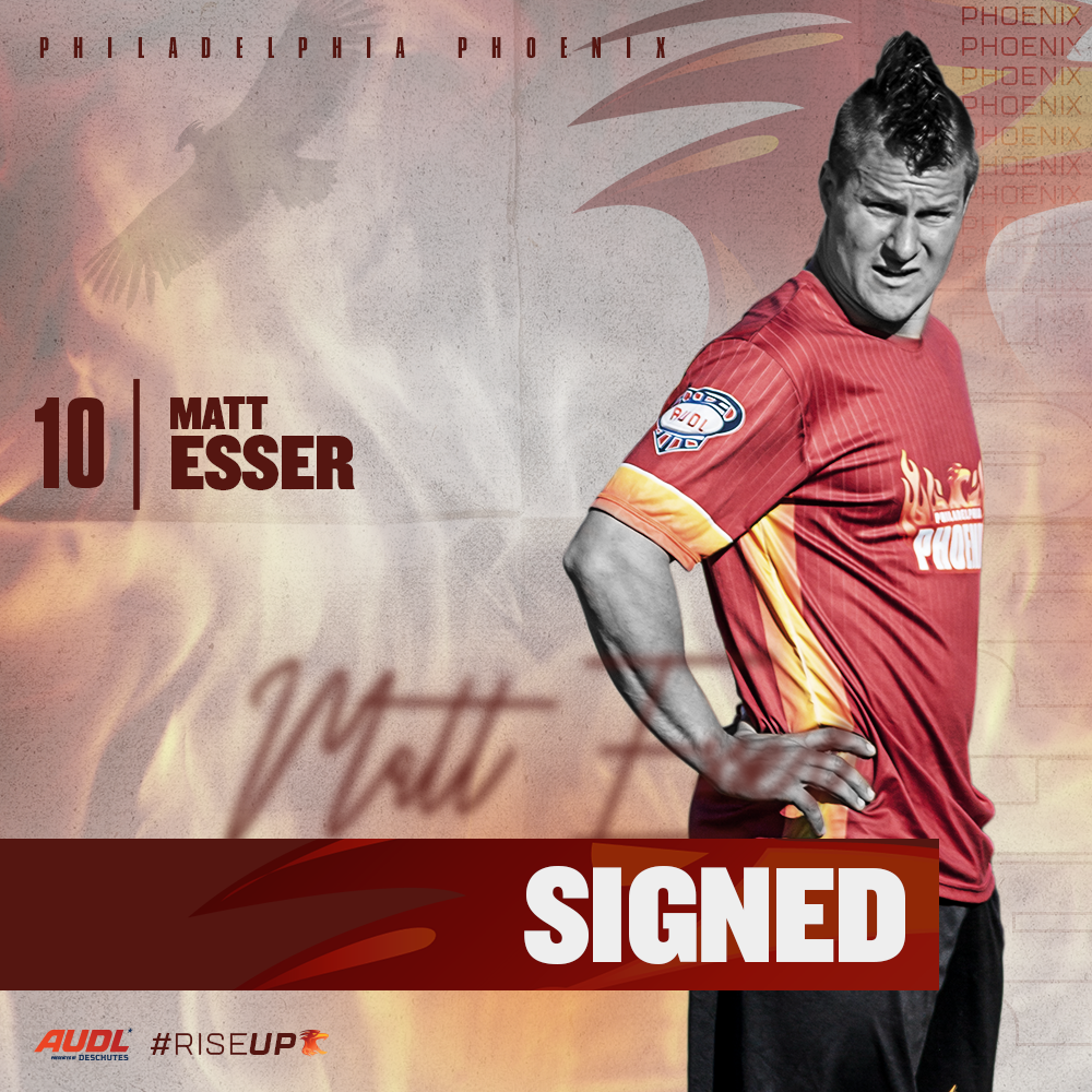 PHILADELPHIA —The Philadelphia Phoenix announce the return of veteran Matt Esser for the 2020 season. His career with the Phoenix dates back to 2013, when the franchise adopted the Phoenix name and secured their only playoff appearance to date. Coming into his fifth AUDL season, the shake up of the divisional realignment has put Esser’s sights on a second AUDL postseason appearance. “As a player I want to help lead the team to a division playoff game, and develop defensive schemes that will disrupt the offenses we expect to face in the Atlantic,” said Esser. “I am very excited to be signing with the Phoenix this year. Our program is in the midst of a growth spurt, not only with talented players, but also as an organization. We are going to turn some heads with some very exciting wins against new opponents.”