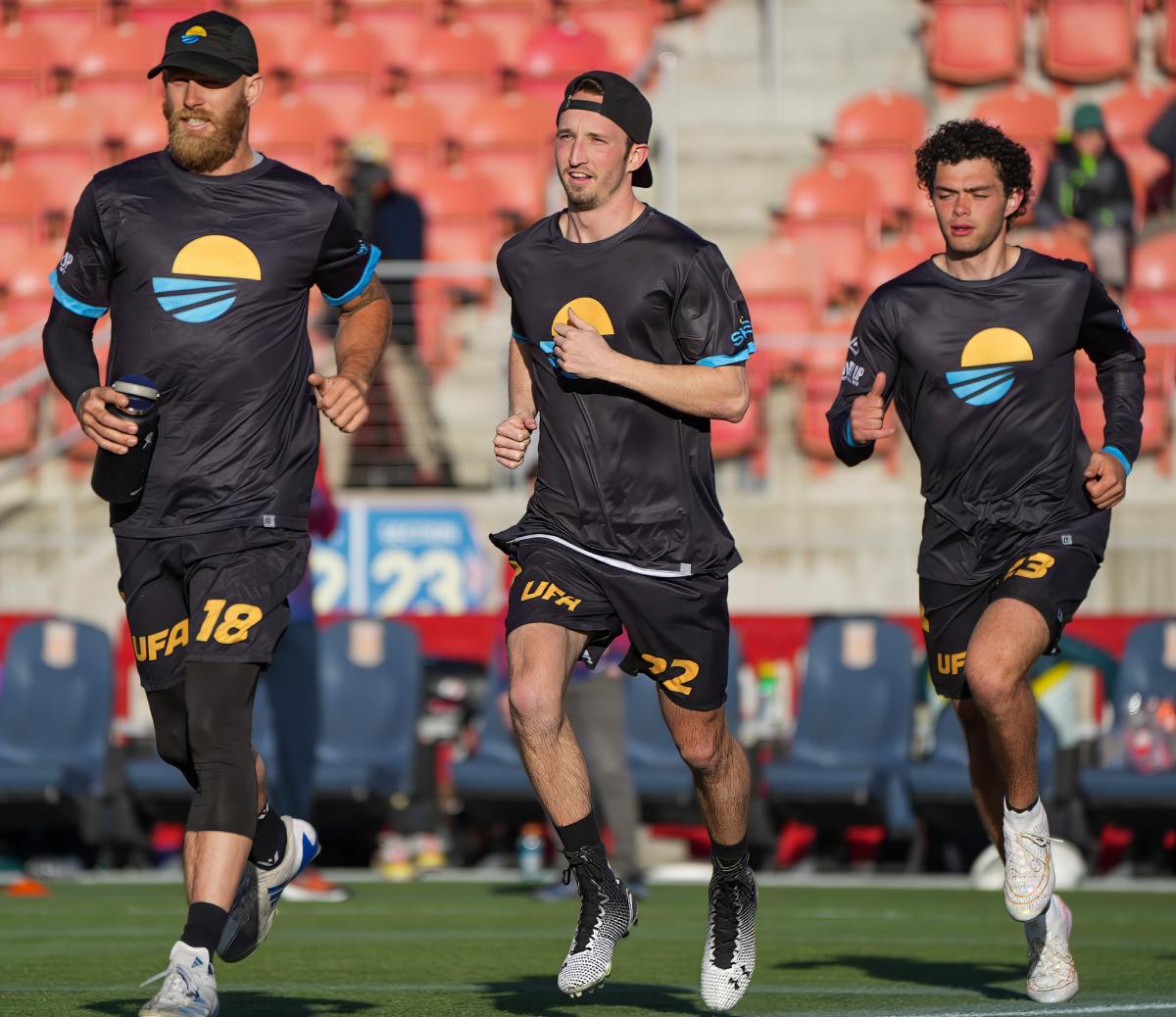 In the first quarter, both teams were feeling things out. The sun was shining and the breeze was breezing a comfortable 13 mph. Both teams opened with a hold before the Shred went on a run of three breaks in a row. Jonny Hoffman had a huge, shoulder-high bid to score and both teams showed off some impressive hucks. In the final point of the quarter, the Spiders scored, but a time-out call retracted their goal and they unable to score again post time-out.