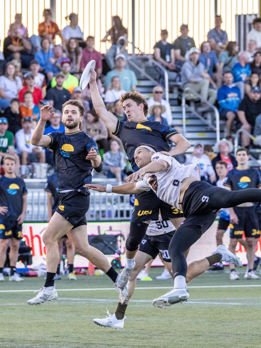 Despite a close call on a strip or drop in the end zone, the Bighorns managed to hold. The Shred answered immediately with Jacob Miller calmly collecting a goal for a 2-1 lead. From there, the floodgates opened. Reed Browning made a statement with a key D that led to a break, and when Vegas dropped a pull, Salt Lake quickly converted with McKay Yorgason hitting Ethan Wimmer.