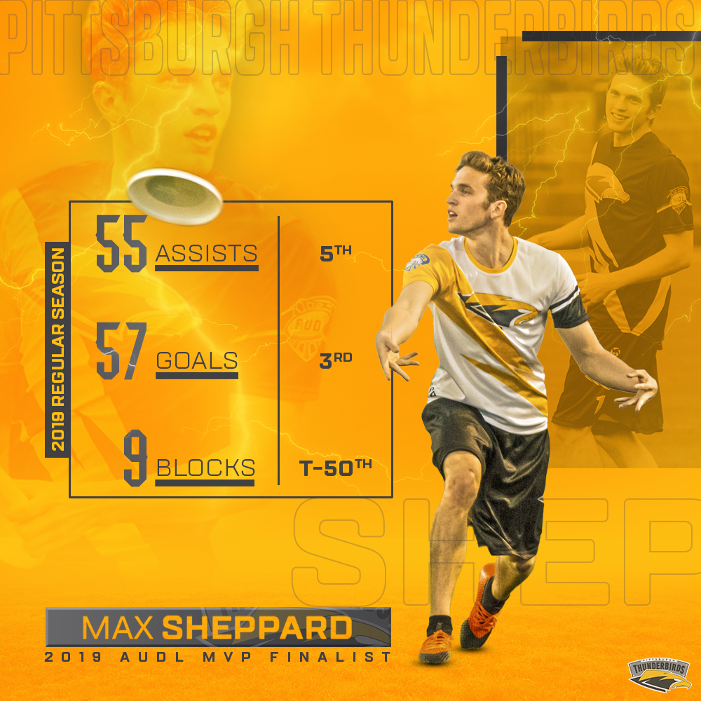 While the exceptional play from Thomas Edmonds, Anson Reppermund, Jimmy Towle and others contributed to that boon, Sheppard assisted or scored a goal on a mind-boggling 43 percent of Thunderbird points during the regular season, the highest percentage for anyone for any team during the 2019 AUDL season.