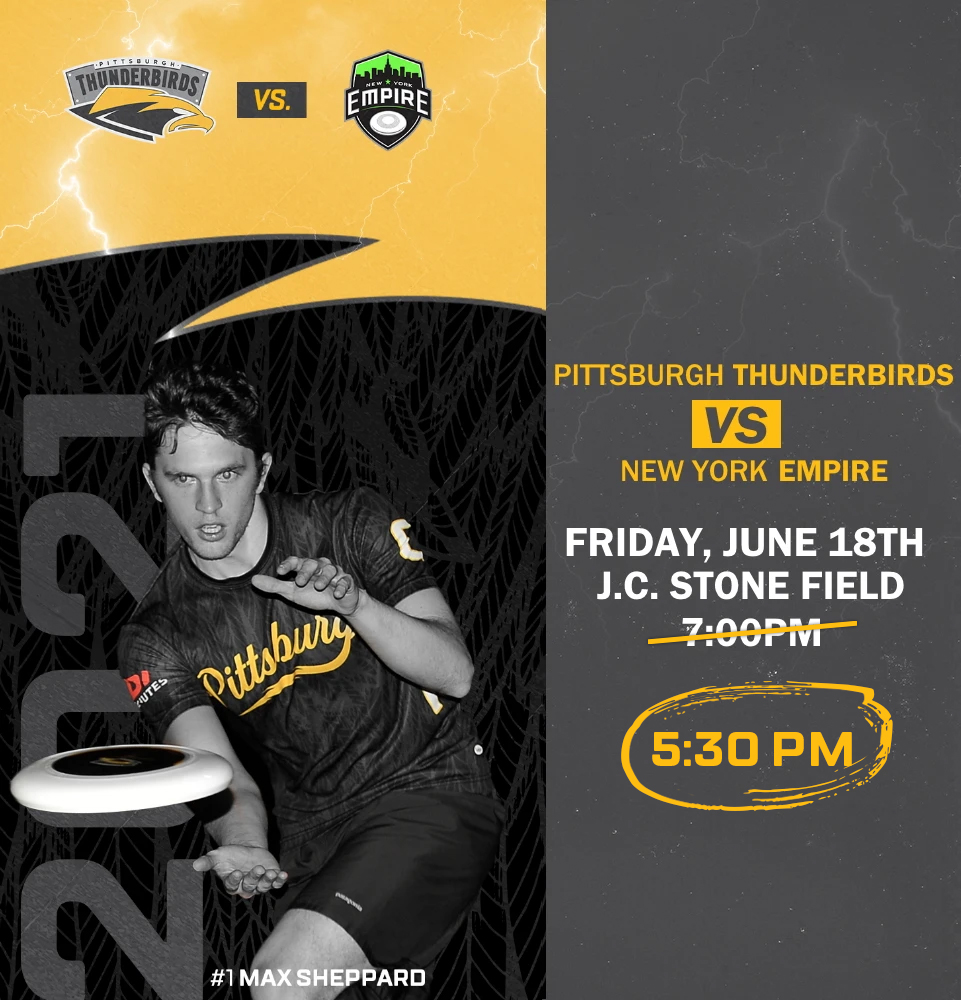 We appreciate all of your past, current, and future support of the Thunderbirds. Those who purchased tickets who are unable to make the game due to the time change, please e-mail info@pghthunderbirds.com and we will get back to you.
