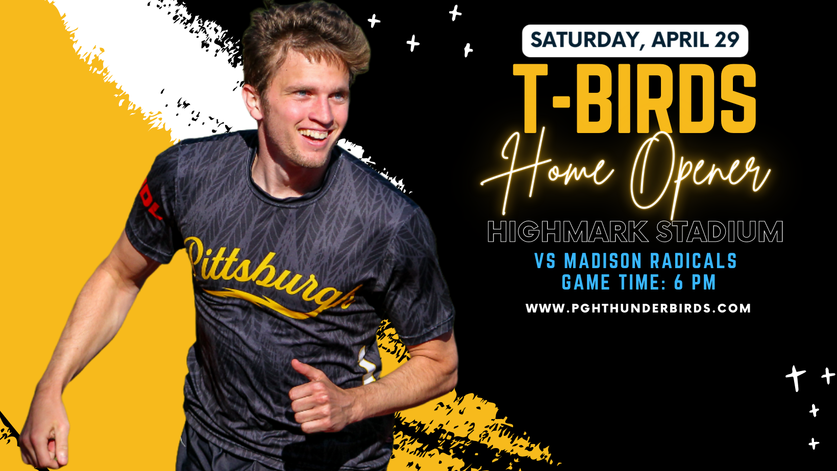Pittsburgh, Pa – The Pittsburgh Thunderbirds begin their 2023 American Ultimate Disc League campaign Saturday, April 29, against the Madison Radicals. This battle between AUDL Central Division squads starts at 6:00 p.m. at Highmark Stadium.
